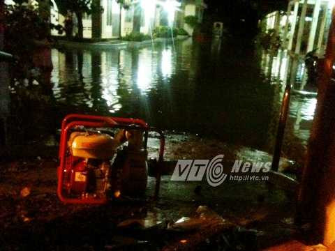 | Dùng máy bơm nước ra ngoài. Ảnh: Huy Cường |