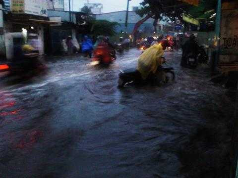 Chiều 28/9, một cơn mưa lớn kéo dài nhiều giờ đã khiến hàng loạt tuyến đường ở TP.HCM ngập sâu như: đường Tân Hóa (Q.6), Lũy Bán Bích (Q.Tân Phú), Xô Viết Nghệ Tĩnh, D2, Ung Văn Khiêm (Q.Bình Thạnh), Lương Định Của, Trần Não (Q.2), Quốc lộ 13 (Q.Thủ Đức)...
