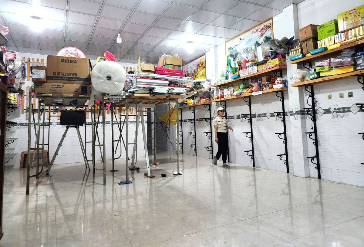 Chủ cửa hàng đồ chơi trẻ em ở xã Đại Đồng đã chủ động dọn đồ đạc từ sớm nhằm tránh nước lũ dâng trong đêm gây thiệt hại.