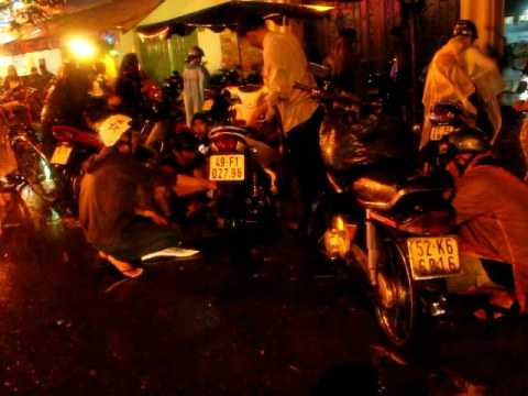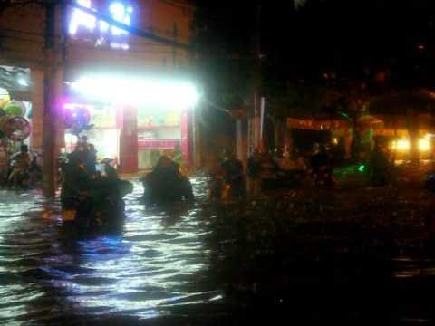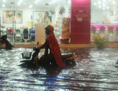 | Lượng mưa lên đến 105mm đã khiến nhiều tuyến đường Sài Gòn biến thành "sông" |