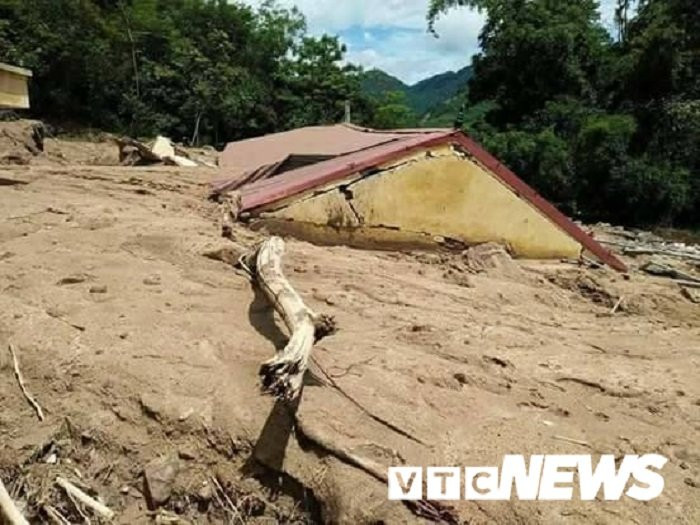 Trường học bị đất đá vùi lấp trong mưa lũ tại huyện Mường Lát (Thanh Hóa).