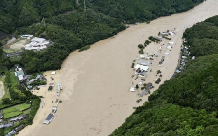 Các trận mưa như trút nước kéo theo lở đất đã cuốn trôi nhiều nhà cửa tại thị trấn Ashikita thuộc địa bàn tỉnh này. Sông Kuma nước dâng tràn bờ, gây ra tình trạng ngập lụt trên diện rộng, một cây cầu đã bị nước lũ cuốn trôi.