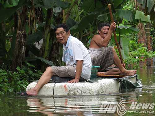 Trời vẫn tiếp tục xuất hiện những trận mưa lớn, trong khi từ chiều qua đến nay nước mới chỉ rút được khoảng 15 cm.