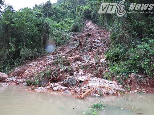 | Những moong nước trên lưng trừng núi tạo thành những thác nước đổ xuống xã đảo Việt Hải, khiến hàng chục hộ dân ngật lụt - Ảnh MK |