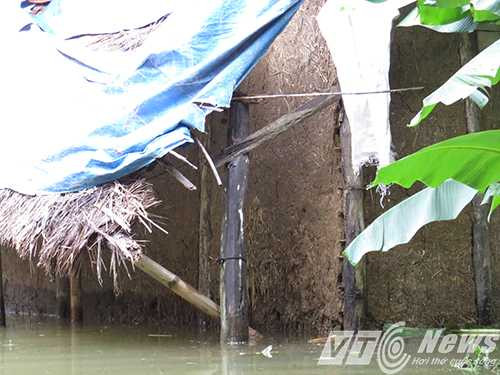| Ngôi nhà tranh vách đất của bà Hoát chìm trong biển nước, có nguy cơ đổ sập - Ảnh MK |