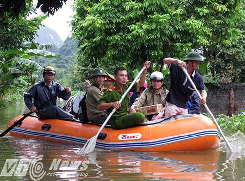 Theo ghi nhận của PV VTC News, đến 12h trưa nay (31/7), hàng chục hộ dân vẫn ngập trong biển nước, việc tiếp tế, di chuyển từ ngoài vào xã chủ yếu vẫn dùng thuyền nan, cano của Bộ đội Biên phòng Cát Bà.