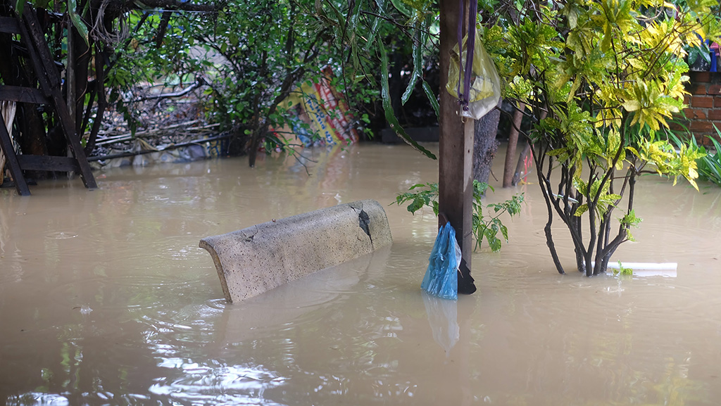 Nước lũ dâng nhanh khiến nhiều nhà dân ở Khánh Hòa bị ngập nặng
