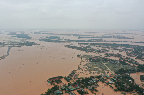 Ngày 19/10, nước ở các vùng hạ du tại Hà Tĩnh dâng lên rất nhanh sau khi hồ Kẻ Gỗ xả lũ.
