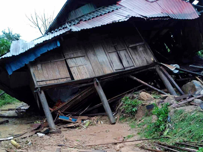 Về tài sản, 50 căn nhà bị ảnh hưởng do sụt lún đường, đất đá sạt lở taluy dương vào nhà.