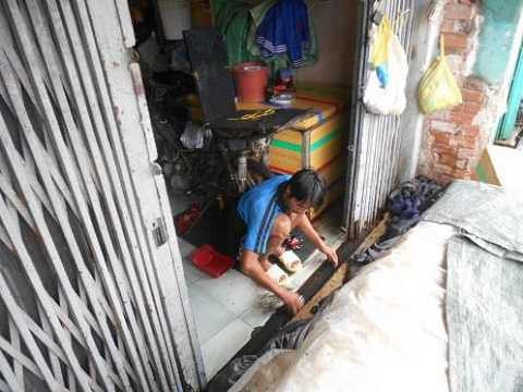 Theo đó, tại “rốn” ngập đường Ấp Chiến Lược, Mã Lò, thuộc P.Bình Trị Đông A, Q.Bình Tân (TP.HCM), nhiều hẻm ngập hơn nửa mét, nhà dân hai bên đường chìm trong nước.