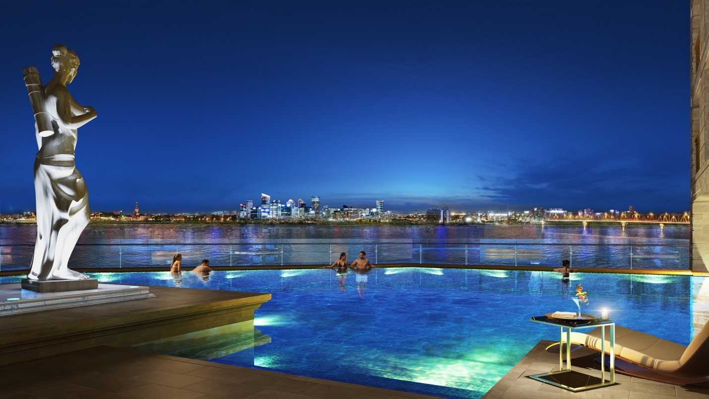 Bể bơi vô cực tại tầng 8 tháp dịch vụ mang đến những giây phút nghỉ ngơi thư giãn cho cư dân