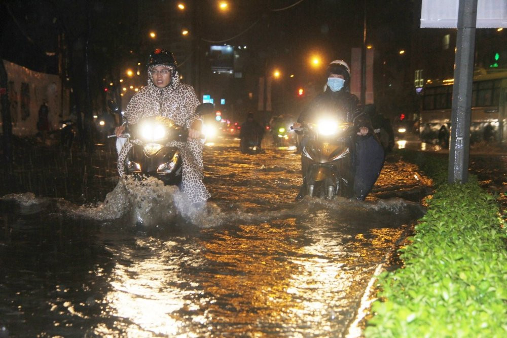 Chiều tối 30/9, cơn mưa lớn kéo dài nhiều giờ đồng hồ khiến nhiều tuyến đường ở các quận TP.HCM ngập nặng.
