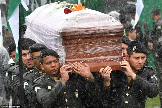 Trước đó, chiều 2/12, thi thể của 50 thành viên CLB bóng đá của Brazil đã được đưa về quê nhà tại thành phố Chapeco để an táng bằng máy bay quân sư.
