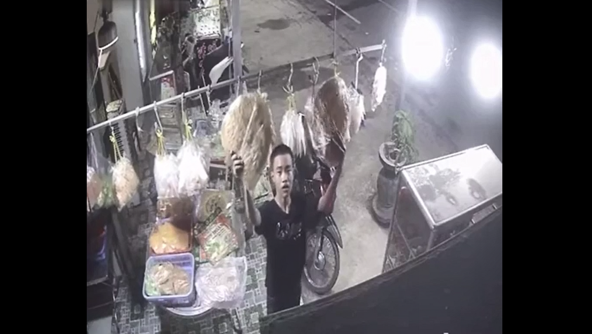 Mua mấy cái bánh đa nhưng chủ quán bên đường không có mặt, thanh niên vẫn có thể ghi nợ nhờ cái camera.