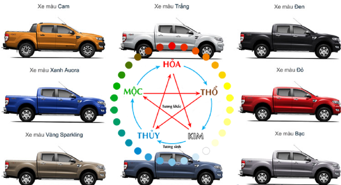 Chủ xe mệnh Thủy: Hợp với màu xanh, màu đen, màu bạc, màu xám, màu trắng. Tránh tông màu vàng, màu nâu, màu đỏ, màu hồng, màu tím.