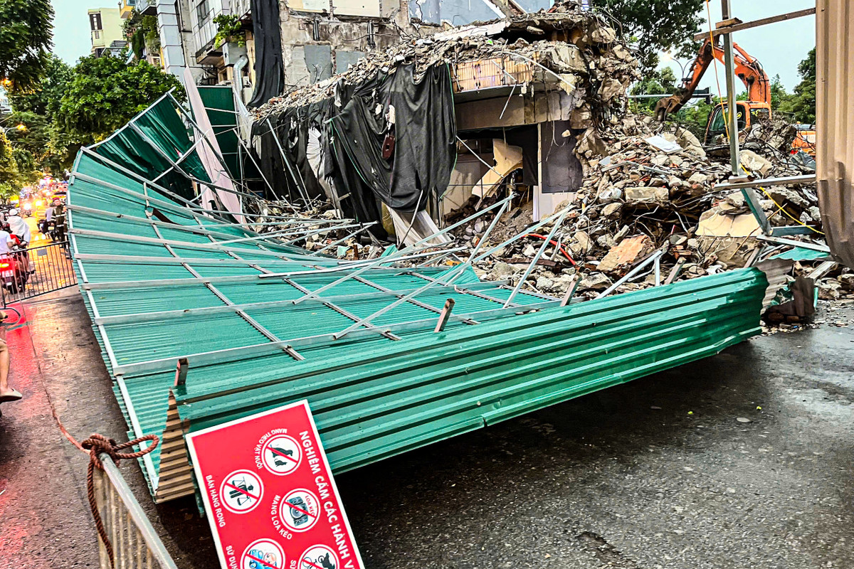 Phần rào bao quanh khu vực tháo dỡ tòa nhà Hàm cá mập bị đổ sập trong cơn dông.
