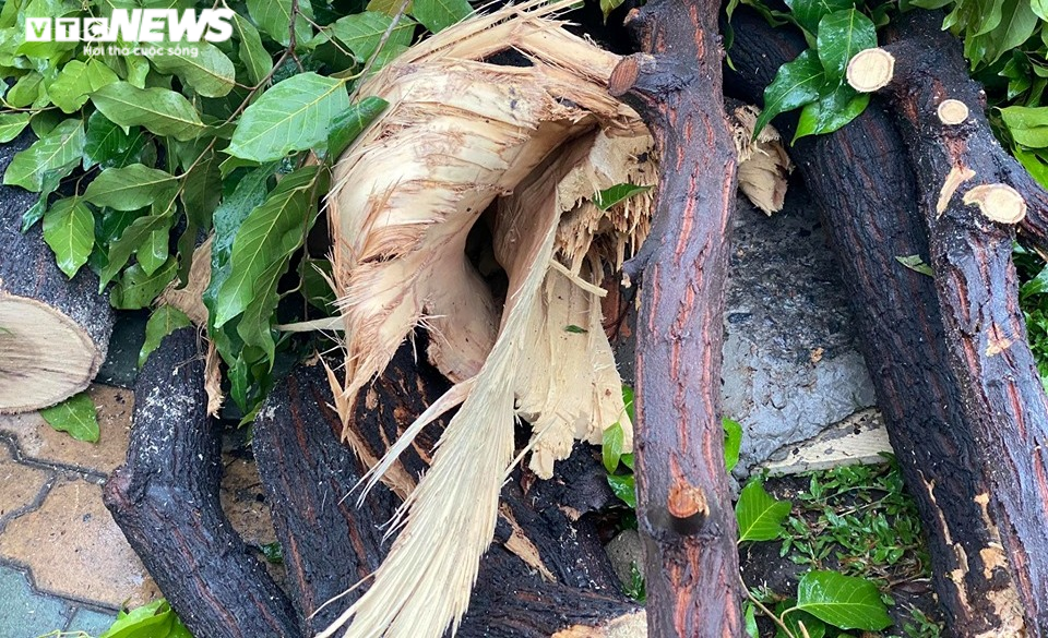 Cây xanh bật gốc, nhành cây gãy đổ xuống đất.