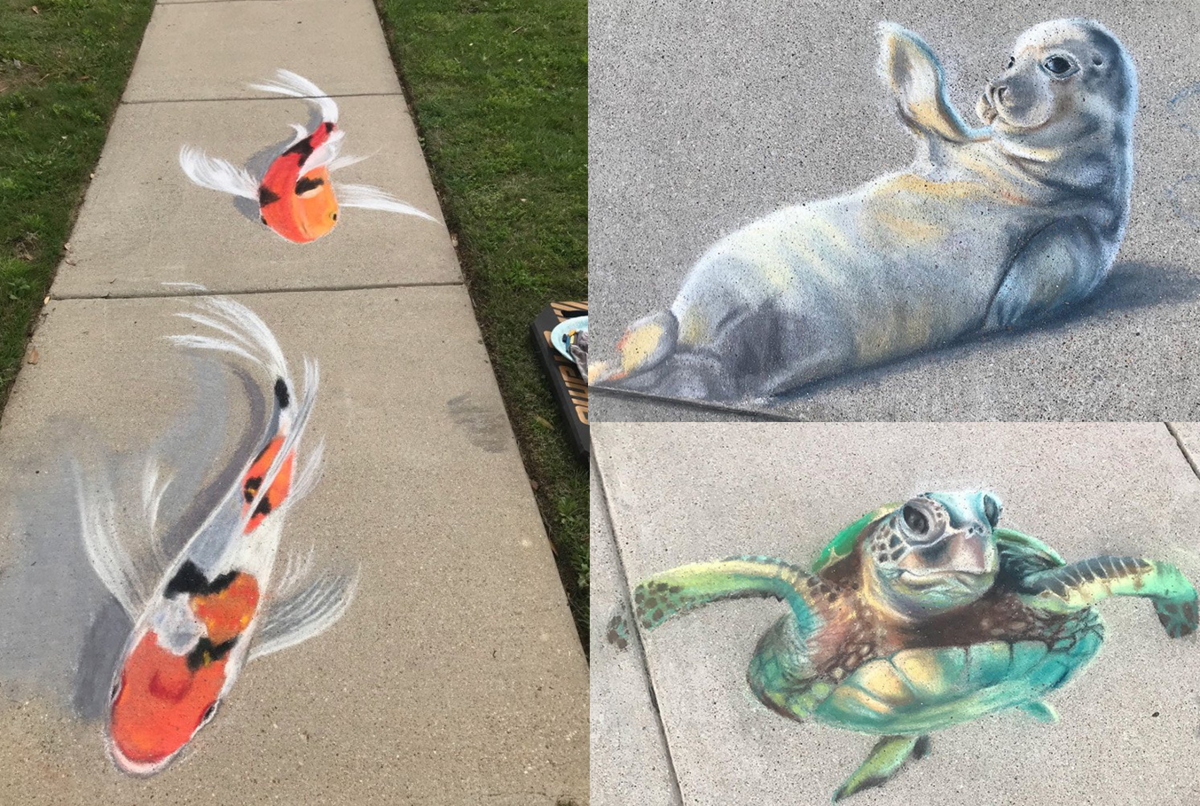 Jan Riggins và cô con gái 13 tuổi Olivia đến từ Texas, Mỹ rất thích vẽ phấn. Trước đại dịch COVID-19, họ thường cùng nhau tham gia các cuộc thi nghệ thuật vỉa hè bất cứ khi nào có cơ hội. Khi đại dịch bùng nổ, họ phải tìm cách khác để duy trì nguồn cảm hứng.