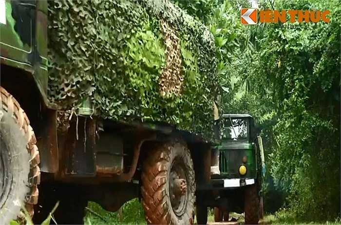Đội hình xe cơ giới chở theo các khí tài hành quân.