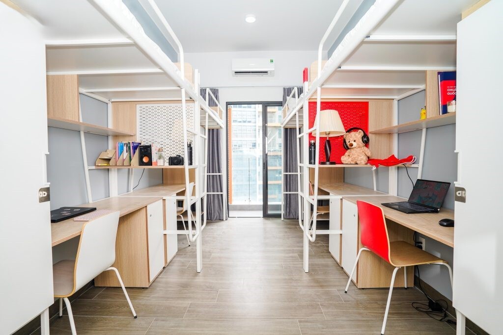 Phòng này có giường tầng, tủ cá nhân, bàn ghế, tủ lạnh, điều hòa, quạt trần, máy giặt, bình nóng lạnh, chăn, ga, gối, nệm, vệ sinh khép kín, dịch vụ wifi (nếu có nhu cầu) và chỉ dành cho lưu học sinh diện ký kết hợp tác. Cụ thể, mức phí các loại phòng như sau: