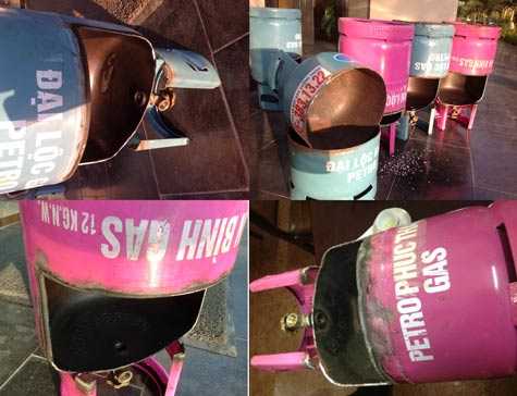 | Một bình gas "ăn cắp" bị mổ, kết quả cho thấy nhãn hiệu sơn ngoài và chữ dập bên trong chẳng liên quan gì nhau |