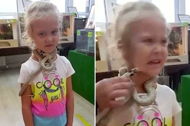 Vài ngày trước, cô bé Vicktoria 5 tuổi cùng gia đình đến vườn thú Russia’s Butterflies Park ở Nga để tham quan. Tất cả mọi người đều vui vẻ, hào hứng. Đến khu vực dành cho loài bò sát, nhân viên vườn thú cho Vicktoria tương tác với một con rắn nhỏ bằng cách quàng nó vào cổ cô bé để chụp ảnh.