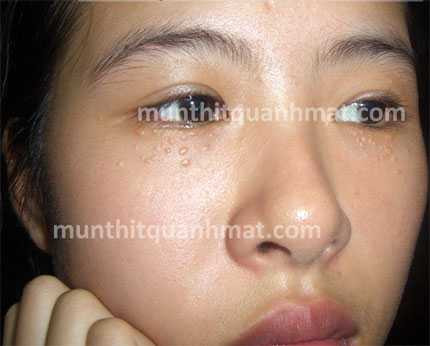 Còn chị T. tâm sự: “Tôi cũng đã từng đi đốt laze 2 lần rồi, nhưng cũng không ăn thua gì. Vì theo giải thích của bác sỹ khi tôi đi khám là do tuyến mồ hôi ở quanh mắt hoạt động kém hiệu quả. Vì vậy mồ hôi không thoát ra được mà đọng lại lâu ngày đẩy lên trên, gây ra những mụn quanh mắt...