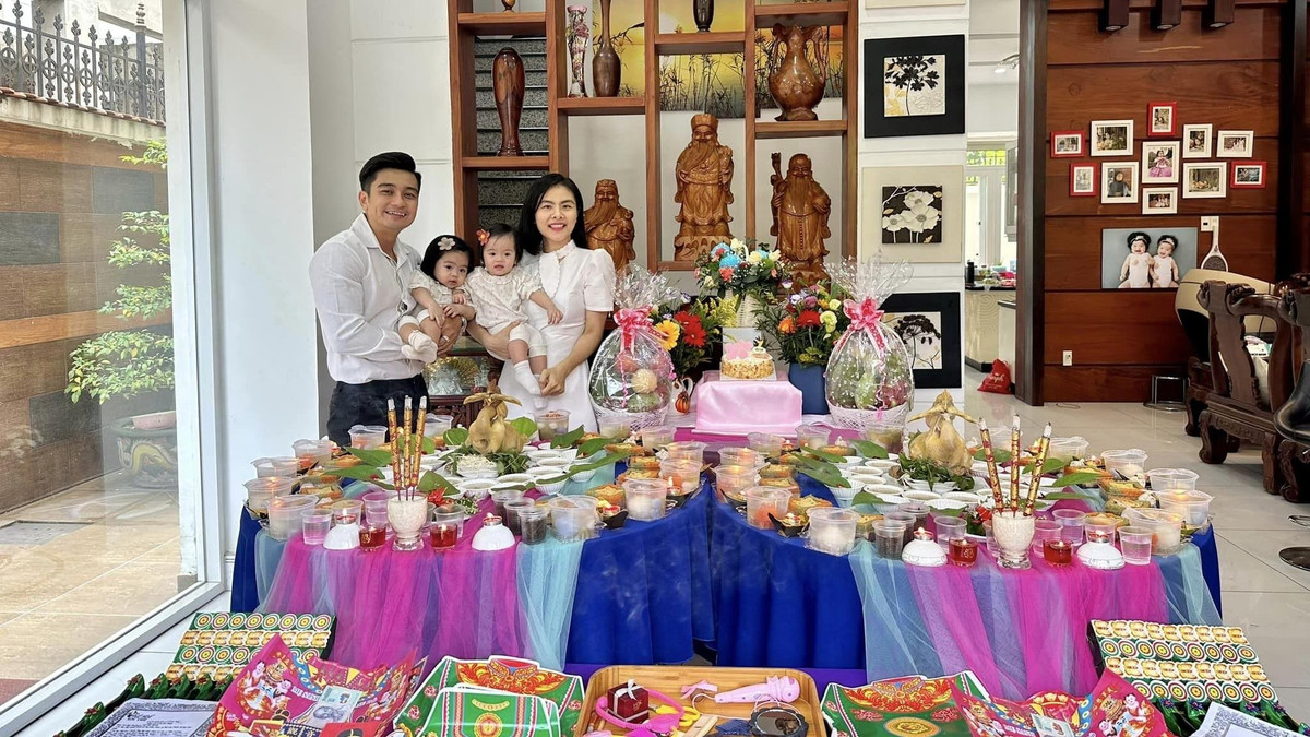 Vân Trang cùng ông xã bên hai cô con gái sinh đôi