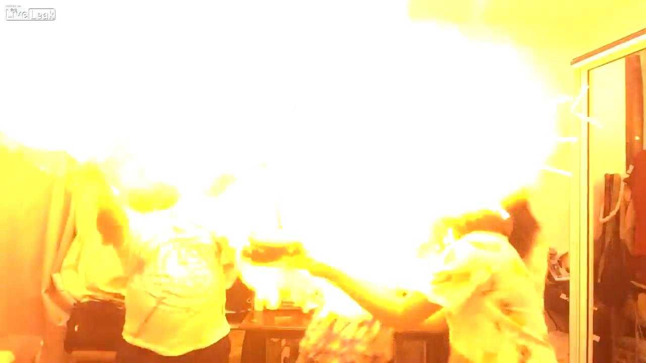 Bóng bay bị bắt nến và bùng cháy khiến những người đứng xung quanh được phen thót tim.