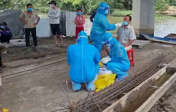 Nhân viên y tế thực hiện lấy mẫu xét nghiệm SARS-CoV-2 cho người dân. (Ảnh: C.T)