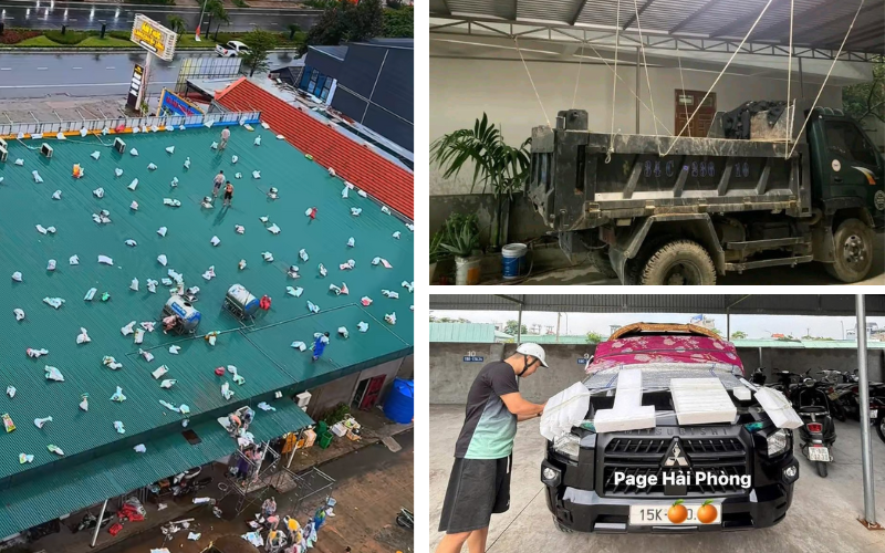 Nhiều hộ dân chọn cách bơm nước vào các thùng xốp rồi đặt lên mái nhà như một biện pháp gia cố tạm thời nhưng hiệu quả trước bão lớn. Đây được xem là một biến tấu sáng tạo, tận dụng vật liệu sẵn có tại nhiều vùng nông thôn, ven biển.