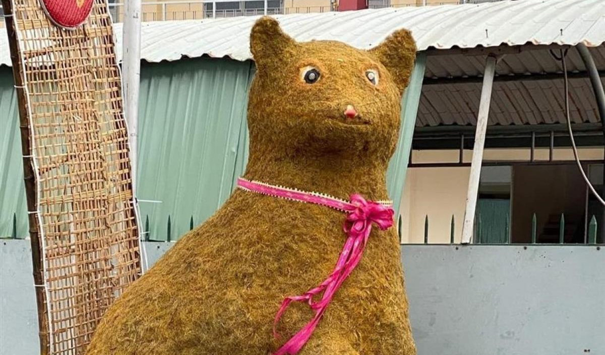 Tại Hà Nội, linh vật mèo chào đón xuân Quý Mão 2023 được đặt ở Công viên Thống Nhất cũng có hình dạng lạ mắt. Nhiều người nhận xét, mô hình mèo này trông giống cáo. Râu của mèo cũng bị liên tưởng tới râu chuột, dáng ngồi của lại giống thỏ. (Ảnh: Kim Nhung)
