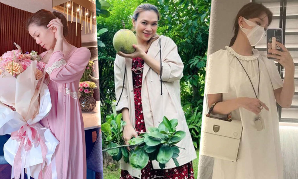 Diễn viên Thúy Diễm cũng từng bị cho là mang thai con thứ 2 khi cô diện chiếc váy rộng, che hết đường cong. Nhiều khán giả thậm chí còn tin vào điều mình nghĩ đến mức gửi lời chúc mừng vợ chồng cô sắp có thêm thành viên mới.
