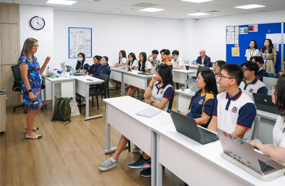 Bên cạnh đó, nhà trường còn tổ chức các hoạt động Demo Class (lớp học mô phỏng) định kỳ, nơi học sinh được gặp gỡ đại diện tuyển sinh từ các đại học top 1% toàn cầu như Melbourne, Monash, New South Wales, Adelaide, cùng các lớp học trải nghiệm về ngành học nổi bật như: Công nghệ AI và cơ hội nghề nghiệp, Chế tạo robot, hoặc Tìm hiểu về tế bào trong Y khoa.