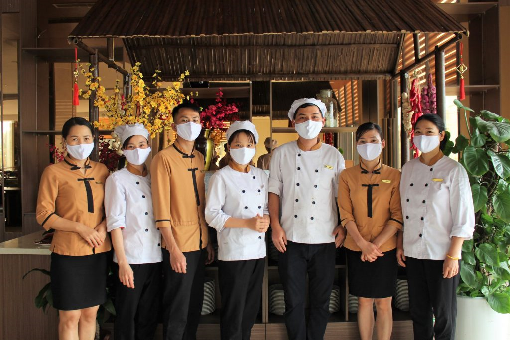 Bên cạnh đó, khách sạn cũng quyết liệt trong việc tiến hành khử trùng, vệ sinh sạch sẽ các công cụ dụng cụ và khu vực tiếp đón khách.