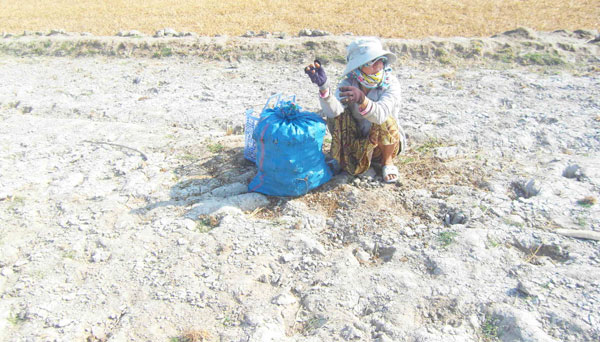 Do thời tiết hạn hán, người dân tại tâm hạn Ninh Thuận không trồng trọt được đành phải đi nhặt phân bò khô để kiếm tiền.