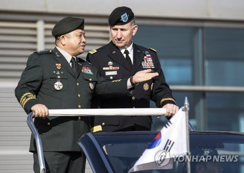 Chủ tịch Hội đồng tham mưu trưởng Hàn Quốc Park Han-ki và Tư lệnh các lực lượng Mỹ tại Hàn Quốc Robert Abram tại Seoul ngày 13/11/2018. (Ảnh: Yonhap)