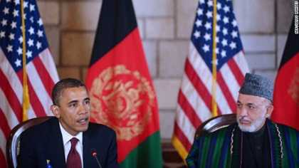 | Ảnh 1: Tổng thống Mỹ Barack Obama và tổng thống Afghanistan Hamid Karzai tại cuộc gặp ngày 1-5. Ảnh: CNN |