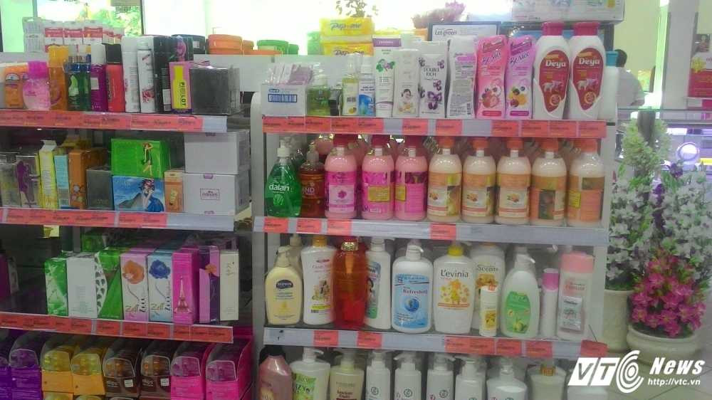 Tại Siêu thị Maximark Cộng Hòa (quận Tân Bình), không khó để nhận ra sản phẩm sữa tắm BeNice nhập khẩu từ Thái Lan có chứa chất triclcosan và triclocarban.