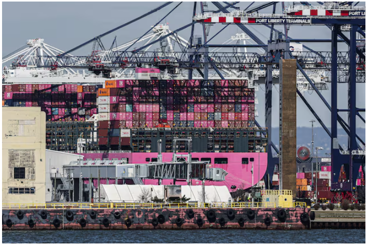 Các container được xếp chồng lên nhau trên boong tàu chở hàng One Minato tại Cảng Liberty New York ở Đảo Staten, New York, Mỹ, ngày 2/4. (Ảnh: Reuters)