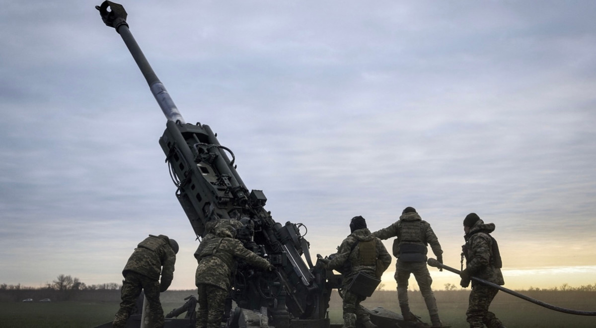 Binh lính Ukraine chuẩn bị pháo lựu M777 do Mỹ cung cấp để bắn vào vị trí của Nga. (Ảnh: AP)