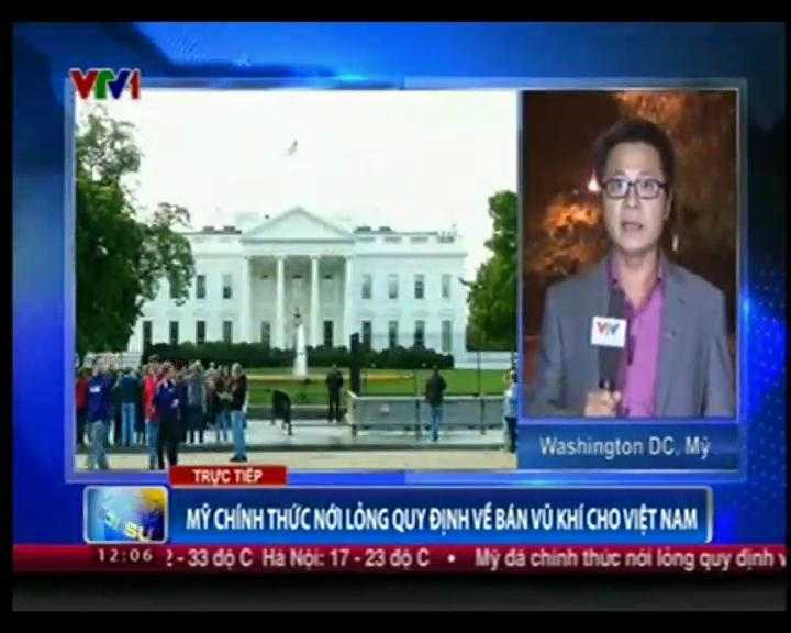 Mỹ đã chính thức nới lỏng quy định về việc bán vũ khí cho Việt Nam, phóng viên Trường Sơn (VTV) đưa tin từ Mỹ, cho biết Mỹ có thể bán cho Việt Nam các trang thiết bị quốc phòng sát thương và dịch vụ quốc phòng nhằm tăng cường khả năng an ninh biển và nhận thức về lĩnh vực hàng hải.