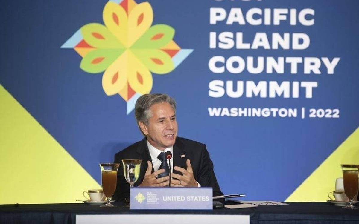 Phiên đầu tiên của hội nghị do Ngoại trưởng Mỹ Antony Blinken chủ trì, có sự tham gia của lãnh đạo 12 quốc đảo Thái Bình Dương và đại diện của Australia, New Zealand với tư cách quan sát viên.
