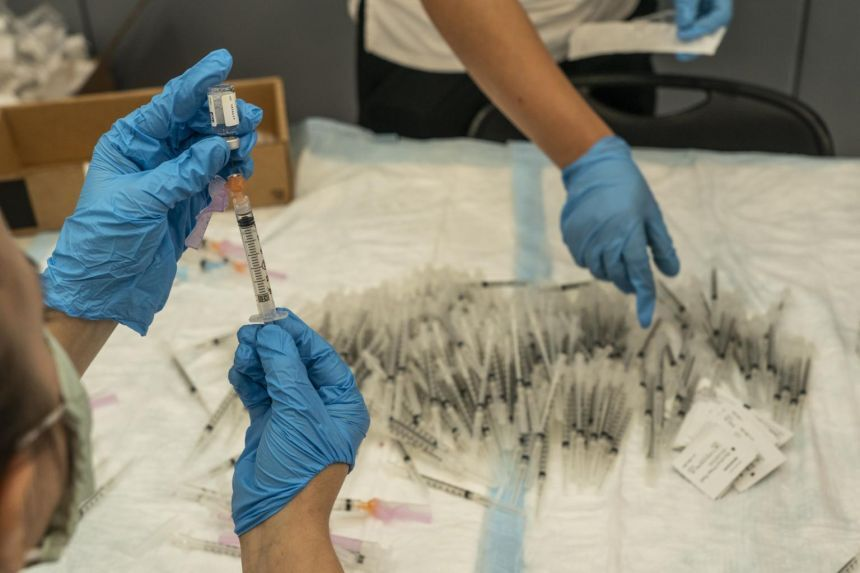 Nhân viên y tế chuẩn bị các liều vaccine Johnson & Johnson để tiêm cho người dân tại Houston. (Ảnh: NYT)