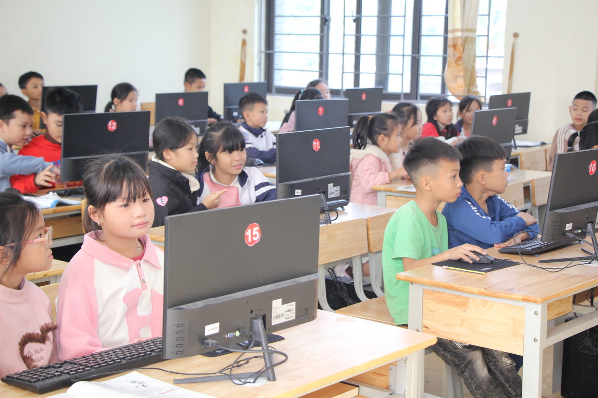 Một tiết học thực hành môn tin học của các em học sinh Trường tiểu học An Phú, Mỹ Đức, Hà Nội.