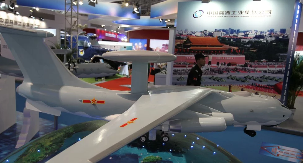 Một mô hình máy bay của Tập đoàn Công nghệ điện tử Trung Quốc, một trong các công ty bị ảnh hưởng bởi lệnh hạn chế. (Ảnh: Simon Song/SCMP)