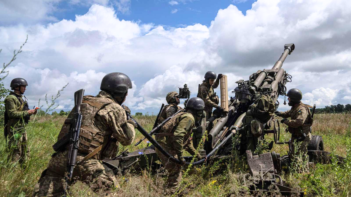 Binh sĩ Ukraine sử dụng lựu pháo M777 của Mỹ trong cuộc xung đột với lực lượng Nga ở vùng Kharkiv. (Ảnh: AP/TTXVN)