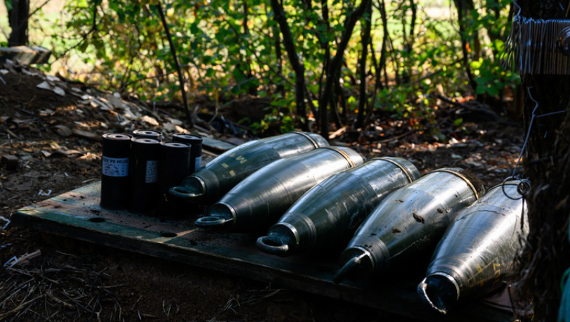 Đạn pháo 155 mm dùng cho lựu pháo M777 do Mỹ sản xuất tại một vị trí của quân đội Ukraine ở Donetsk, ngày 24/6/2024. (Ảnh: Getty Images)