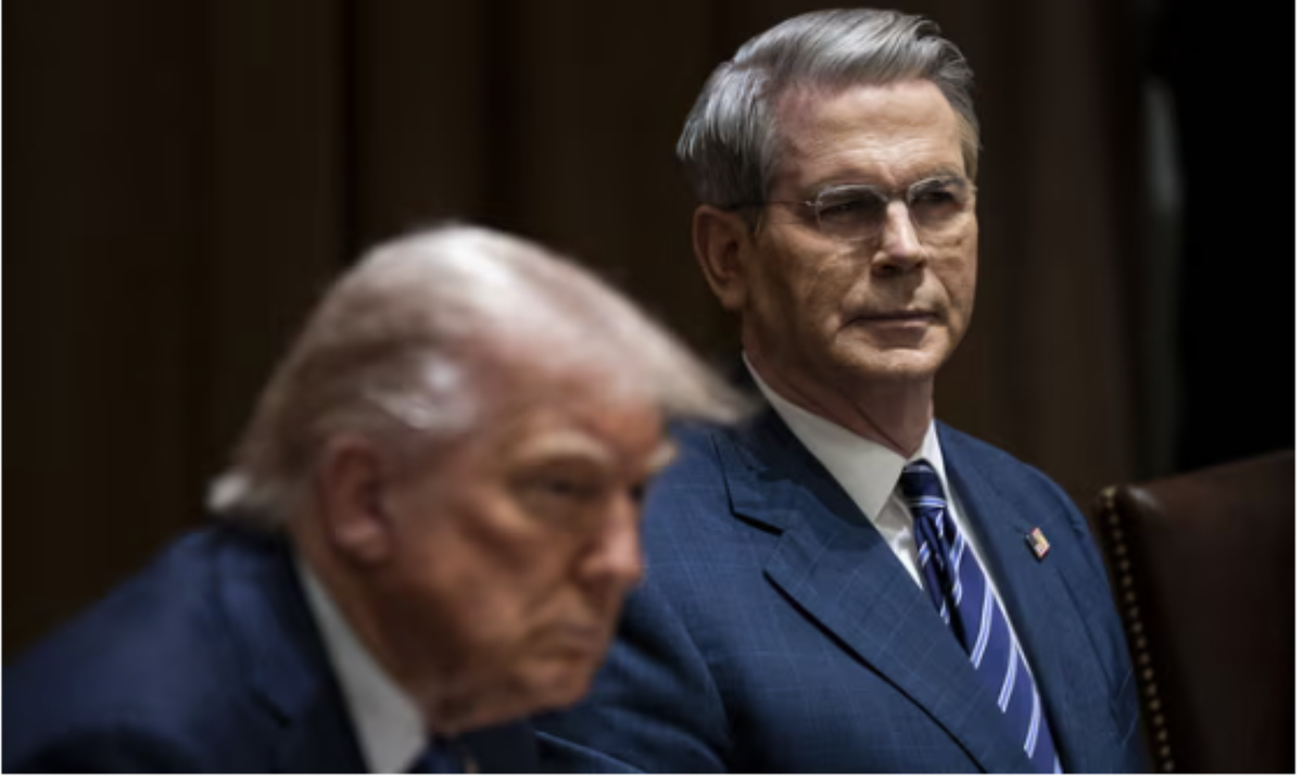 Tổng thống Donald Trump và Bộ trưởng Tài chính Hoa Kỳ, Scott Bessent, tại Nhà Trắng. (Ảnh: The Guardian)