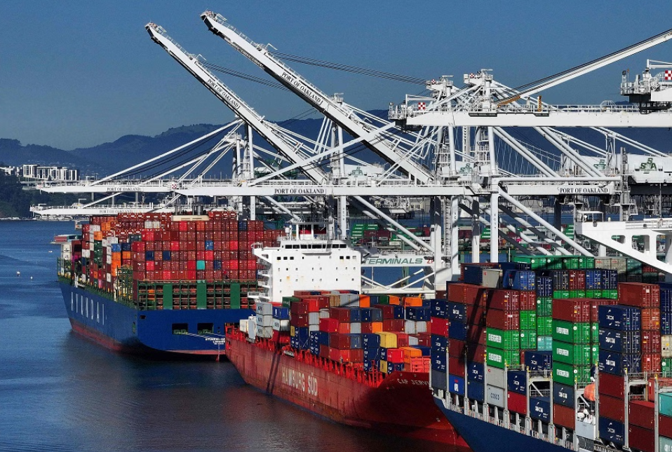 Các tàu hàng cập cảng Oakland ở bang California, Mỹ. (Ảnh: Getty Images)